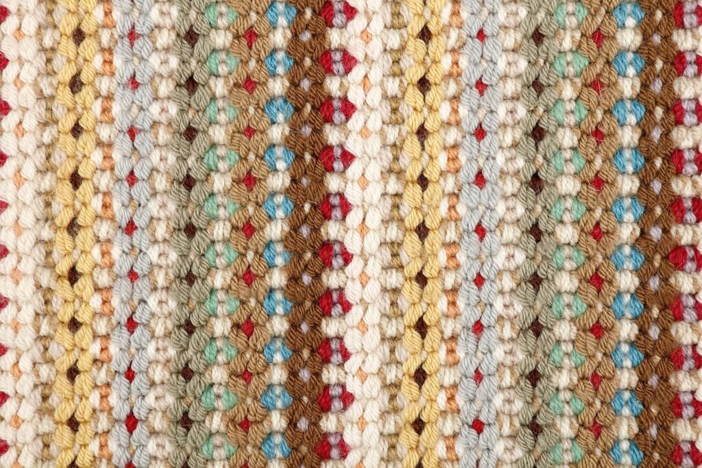 Suporte: juta / algodão / látex. Estrutura: loop.